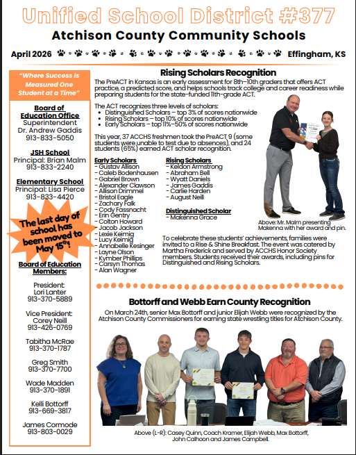 This year we have had minimal inclement weather days, due to this, last night the Board approved amending the Calendar and shortening it by 3 days. The new calendar is linked here as well as to the...