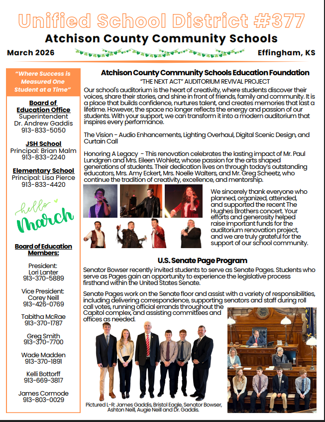 L to R: Kaydeece Fultz, Ayden Powell, Audrey Brown, Harrison Bare, Tessa McAlexander, Quinton AllisonAtchison County Community Junior Senior High School is pleased to announce the candidates for 20...